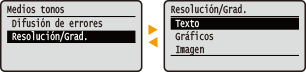 Utilice las siguientes teclas para especificar las opciones y ajustar los valores.
