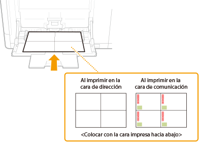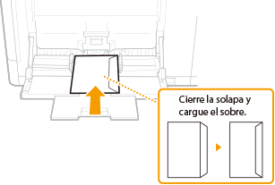 En esta sección se describe cómo cargar sobres en la orientación deseada, así como los procedimientos que debe seguir antes de cargar sobres o tarjetas. Para ver el procedimiento general para cargar sobres en la bandeja multiuso, consulte Carga de papel en la bandeja multiuso. |