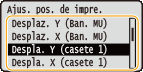 Para <Desp. X (Doble cara)>, primero seleccione el origen del papel y, a continuación, ajuste la posición de impresión.