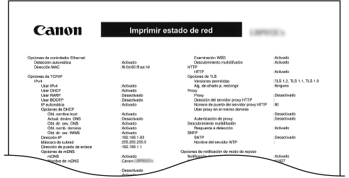 Puede verificar las opciones sobre la red configurada en el equipo (