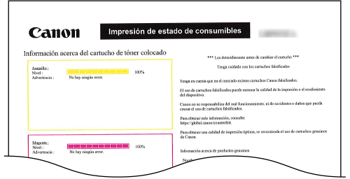 Se puede ver en forma de lista información como el estado de los cartuchos de tóner y de los cartuchos de tambor, los mensajes de advertencia y la información sobre dónde se pueden comprar cartuchos de tóner nuevos.