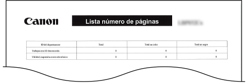 Puede verificar el número de páginas impresas para cada departamento imprimiendo un informe si [Gestión de ID de departamentos] está habilitado.