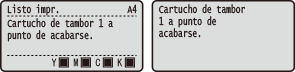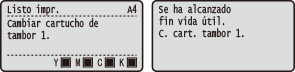 El cartucho de tambor de la ranura indicada se ha agotado. Se recomienda sustituir el cartucho de tambor por uno nuevo.