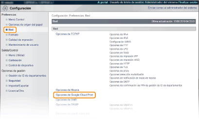 Conexión a una LAN con cableCambio de las opciones de Google Cloud Print