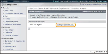 Haga clic en el vínculo de la URL que aparece en [URL para registro].