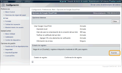 Habilite la función Google Cloud Print del equipo. También podrá desactivar la función Google Cloud Print del equipo.