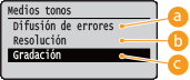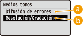 Si <Difusión de errores> está establecido en <Activado>, <Resolución/Gradación> no se mostrará.