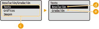 Tipo de imagenSeleccione el tipo de imagen cuya opción desea cambiar. <Texto> representa las letras y caracteres, <Gráficos> representa las líneas y figuras y <Imagen> representa las fotos y otros tipos de imágenes.
