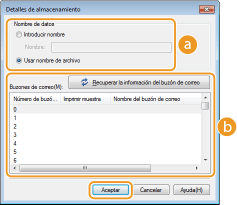 Especifique las opciones para almacenar documentos y haga clic en [Aceptar].