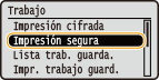 para seleccionar <Impresión segura>, y pulse