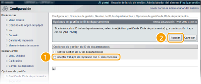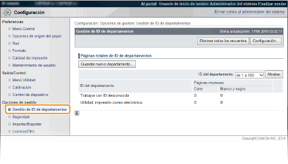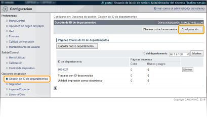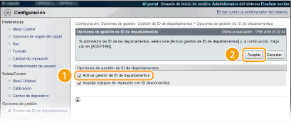 Después de registrar los ID de departamento necesarios, habilite la Administración de ID de departamento.