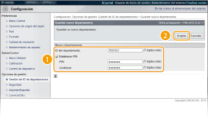 Registre un ID de departamento y configure un PIN para ese ID. Registre todos los ID de departamento que haya que administrar.