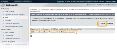 Seleccione la casilla de verificación [Usar confirmación del PIN de gestión de ID de departamentos]