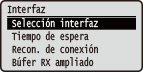 ![]() | Todas las opciones sobre interfaces para comunicaciones con un ordenador y USB se enumeran con descripciones breves. Las opciones predeterminadas se marcan con una cruz ( ). |
