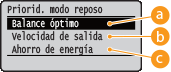 Este elemento está disponible si <Modo reposo> está configurado como <Alto (Reposo)>. Paso al modo de reposo |
