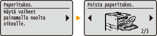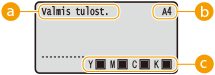 ![]() | Näyttö näyttää tulostuksen tilan ja asetusten määritysnäytöt. Lisäksi se näyttää virheilmoitukset ja väriainekasetin tilan. |