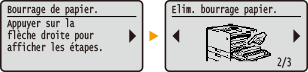 ![]() | L'afficheur affiche l'état de l'impression et les écrans permettant de faire les différents réglages. Il affiche également les messages d'erreur et l'état des cartouches de toner. |