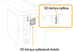 Ez a rész ismerteti az SD-kártya behelyezésének és inicializálásának módját. Helyezze az SD-kártyát a készülék bal oldalán található SD kártyanyílásba. Az SD-kártya telepítését megelőzően olvassa el a Telepítés részben szereplő óvintézkedéseket. Felhívjuk a figyelmét arra, hogy a készülék SD-kártyán tárolt adatai titkosítva vannak. Ez biztosítja, hogy az SD-kártya biztonsággal használható számítógépen, illetve egyéb helyzetekben, mert a kártyán található adatok számára a titkosítás védelmet nyújt az engedély nélküli hozzáférés ellen. | ![]() |