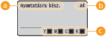 ![]() | A kijelzőn megjelenik a nyomtatási állapot és a beállítások megadására szolgáló képernyők. A hibaüzenetek és a festékkazetta állapota is itt jelenik meg. |