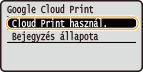 Válassza ki a <Google Cloud Print> lehetőséget, és nyomja meg az