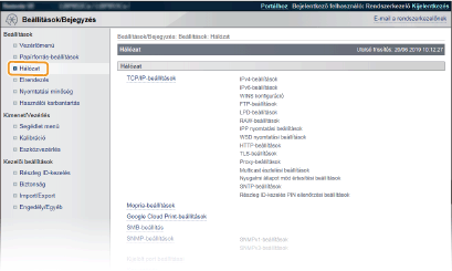 gombokkal válassza ki a <Hálózat> lehetőséget, és nyomja meg az