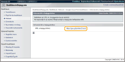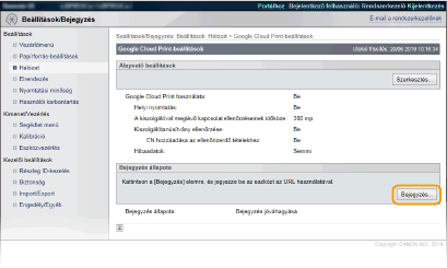 A készülék regisztrálása a Google Cloud Print szolgáltatásban