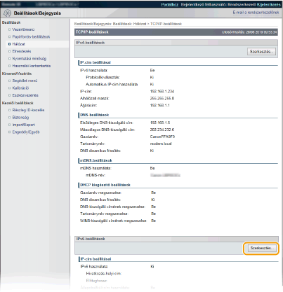 Kattintson a [Szerkesztés] lehetőségre a [IPv6-beállítások] mezőben.