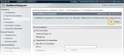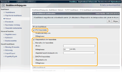 Jelölje be az [IPv6 használata] jelölőnégyzetet, és konfigurálja a szükséges beállításokat.