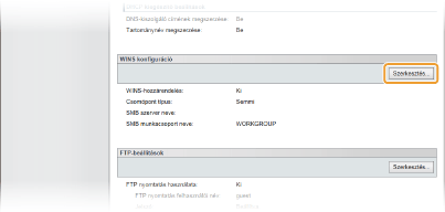 Kattintson a [Szerkesztés] lehetőségre a [WINS konfiguráció] mezőben.
