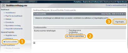 Kattintson az [Eszközvezérlés] menüpontra, válassza a [Hardver újraindítása] lehetőséget, majd kattintson a [Végrehajtás] gombra.