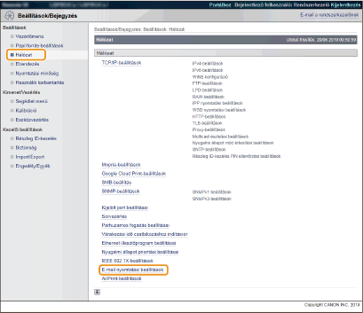 Az E-mail-nyomtatás funkcióval számítógép nélkül is kinyomtathatja az üzenetet és a csatolt képfájlokat, melyeket egy POP3 levelezőkiszolgálóról kapott. Az e-mailek manuálisan, illetve rendszeres időközönként automatikusan is lekérhetők. Az SMTP protokoll használata esetén a készülékre közvetlenül, levelezőkiszolgáló nélkül küldött e-mailek lesznek kinyomtatva.