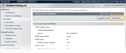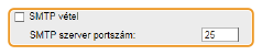 A jelölőnégyzet bejelölésével engedélyezi az SMTP protokoll használatával továbbított e-mailek kinyomtatását. Ezt a beállítást a kezelőpanel beállítás menüjének <SMTP vétel> menüpontjában is megadhatja (