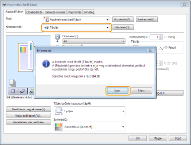 Válassza a [Tárolás] (Tárolása) elemet a [Kimeneti mód] (Kimeneti mód) menüpontban, majd kattintson az [Igen] gombra.
