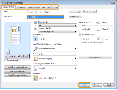 Az itt módosított beállítások a dokumentummal együtt tárolásra kerülnek. A dokumentum következő nyomtatása a tárolt beállításokkal történik.