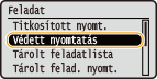gombokkal válassza ki a <Védett nyomtatás> lehetőséget, és nyomja meg az