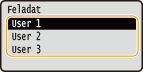 Ha az SD-kártyán több felhasználónak vannak védett dokumentumai, akkor a fenti képernyő előtt az alábbi felhasználóválasztó képernyő jelenik meg. Válassza ki a saját felhasználónevét, majd nyomja meg az