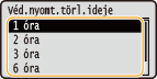 Válassza ki a <Véd.nyomt.törl.ideje> lehetőséget, és nyomja meg az