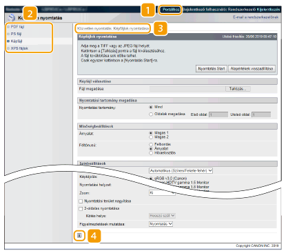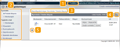 Megjeleníti az [Állapotfigyelés/mégse] lapot. Ezen a lapon ellenőrizheti a nyomtatás állapotát, törölheti a nyomtatást, és megtekintheti a korábbi nyomtatási feladatokat.