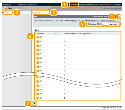 Megjeleníti a [Beállítások/Bejegyzés] oldalt. Ha rendszerkezelői módban jelentkezett be, akkor módosíthatja a beállításokat, illetve mentheti/betöltheti a regisztrált adatokat.