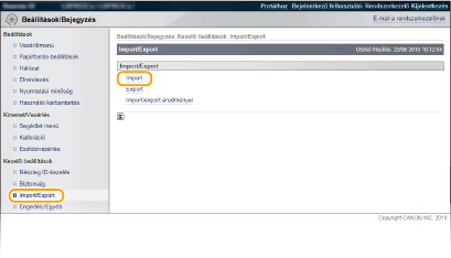 Betöltheti (importálhatja) a készülékről exportált adatokat. Másik készülék beállításait is importálhatja, ha a típusa megegyezik az Ön készülékének típusával.
