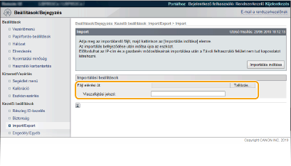 Adja meg az importálandó beállításfájlt, majd írja be a jelszót.