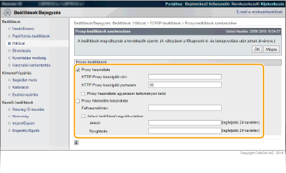 Jelölje be a [Proxy használata] jelölőnégyzetet, és adja meg a szükséges beállításokat.