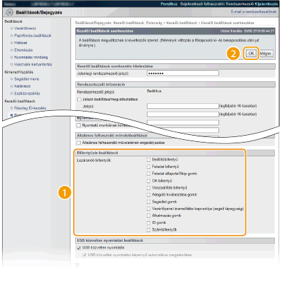 Még akkor is bejelölheti a jelölőnégyzetet és zárolhatja az annak megfelelő billentyűt, amikor azt a kezelőpanelen lenyomja. A billentyű feloldásához törölje a jelet a jelölőnégyzetből. A kezelőpanelen a Beállítás billentyű is zárolható (