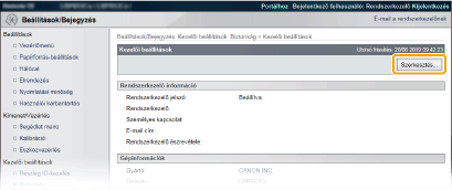 Kattintson a [Beállítások/Bejegyzés] gombra.