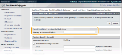 Írja be a rendszerkezelői jelszót az [Jelenlegi rendszerkezelő jelszó] mezőbe.