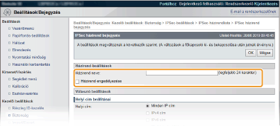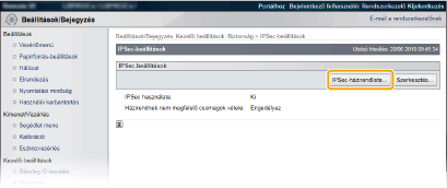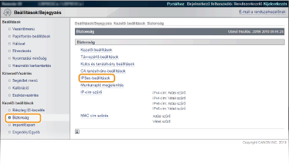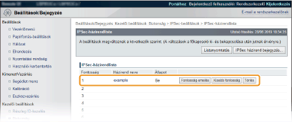 A kezelőpanel használatávalAz IPSec protokollal titkosított kommunikációt a kezelőpanel beállítások menüjéből is engedélyezheti vagy letilthatja. IPSec |