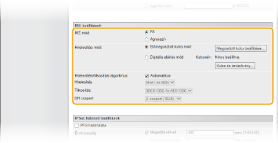 Ha az agresszív módot választja ki az [IKE mód] pontban, az [Előmegosztott kulcs mód] beállítás nem titkosítja a megosztott kulcsot.