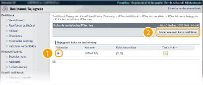 2 | Válassza ki a használni kívánt párt, majd kattintson az [Alapértelmezett kulcs beállításai] lehetőségre. Kulcspár vagy tanúsítvány részleteinek megtekintése |