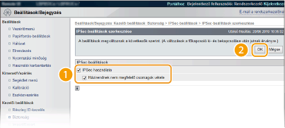 Jelölje be a [IPSec használata] jelölőnégyzetet, és kattintson a [OK] gombra.