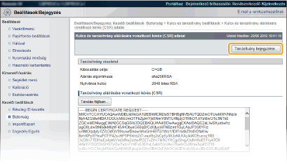 A tanúsítvány aláírási kérelmével (CSR) létrehozott kulcspár nem használható, amíg végre nem hajtja a bejegyzését. Miután a hitelesítésszolgáltató kiadta a digitális tanúsítványt, jegyezze be azt az alábbi művelet végrehajtásával.